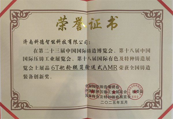 濟南科德智能科技有限公司的6T舵輪輥筒輸送式AMR摘得“全國鑄造裝備創(chuàng)新獎”。