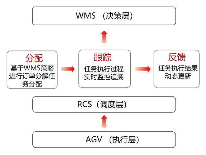 方案核心依托玫德自主研發(fā)的 “決策層 + 調度層 + 執(zhí)行層” 三級架構,各環(huán)節(jié)緊密協(xié)同、無縫銜接,確保倉儲作業(yè)精準高效、全程可追溯。